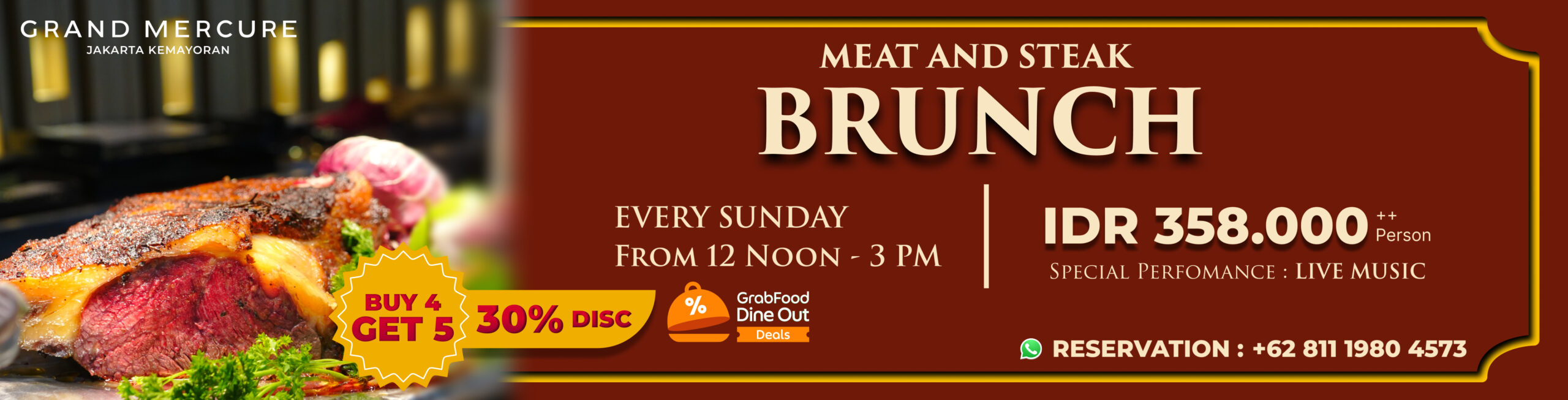 Jakarta – Grand Mercure Jakarta Kemayoran dengan bangga mempersembahkan pengalaman kuliner istimewa melalui Sunday Brunch bertajuk “Meat and Steak”. Menggabungkan